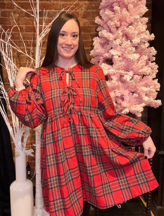 Make It Merry Plaid Babydoll Dress