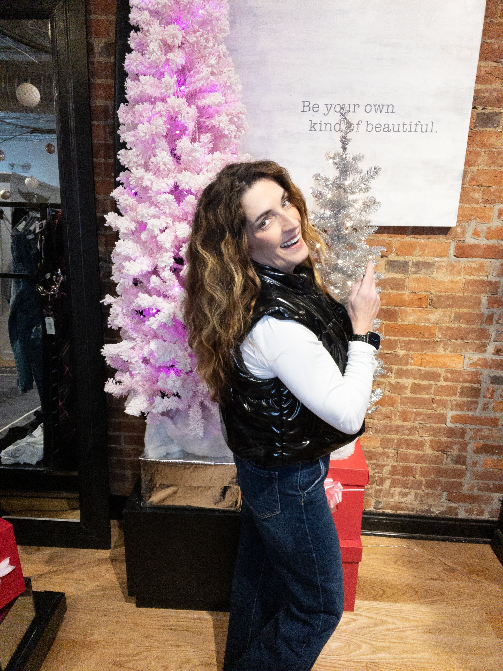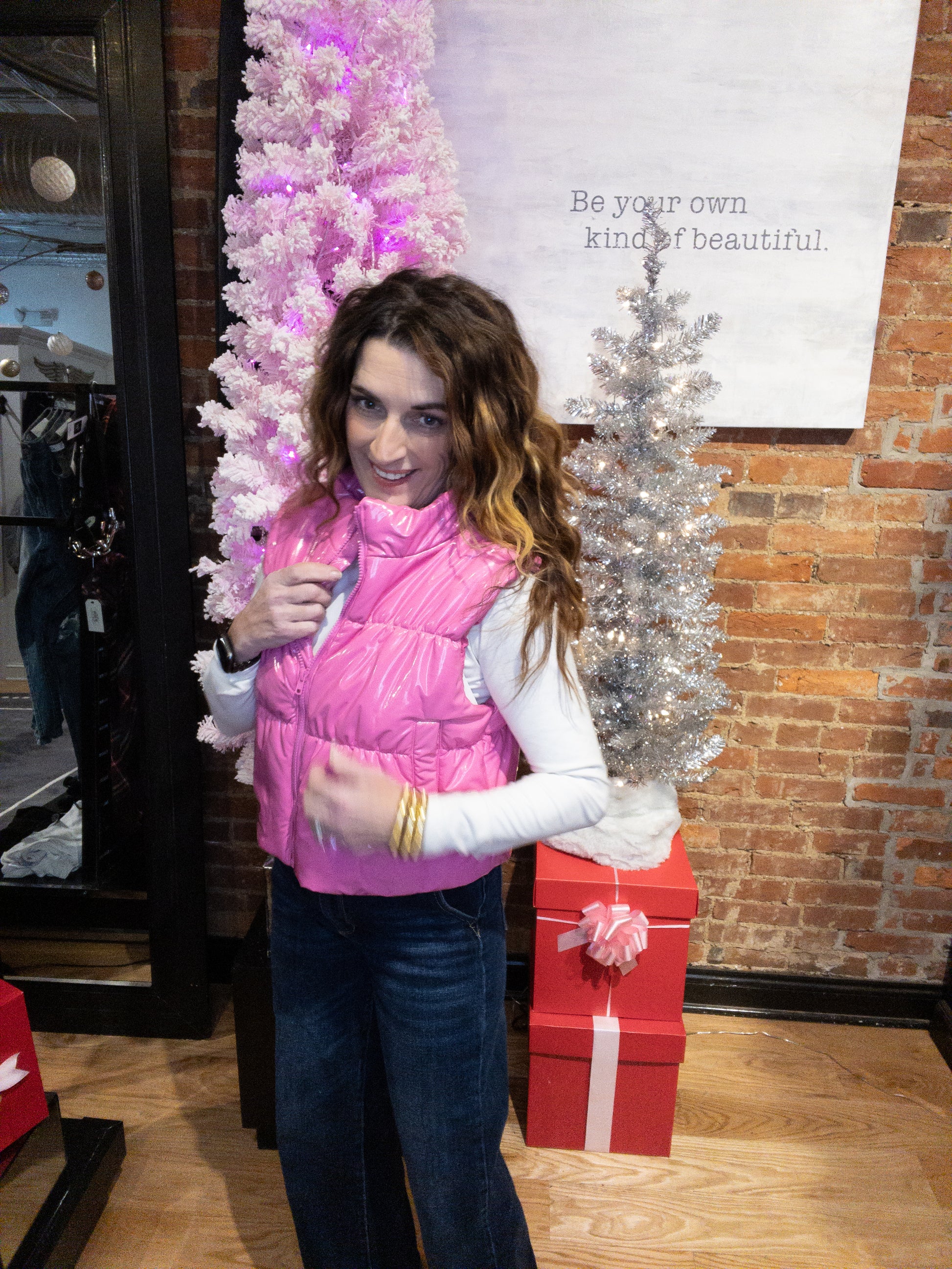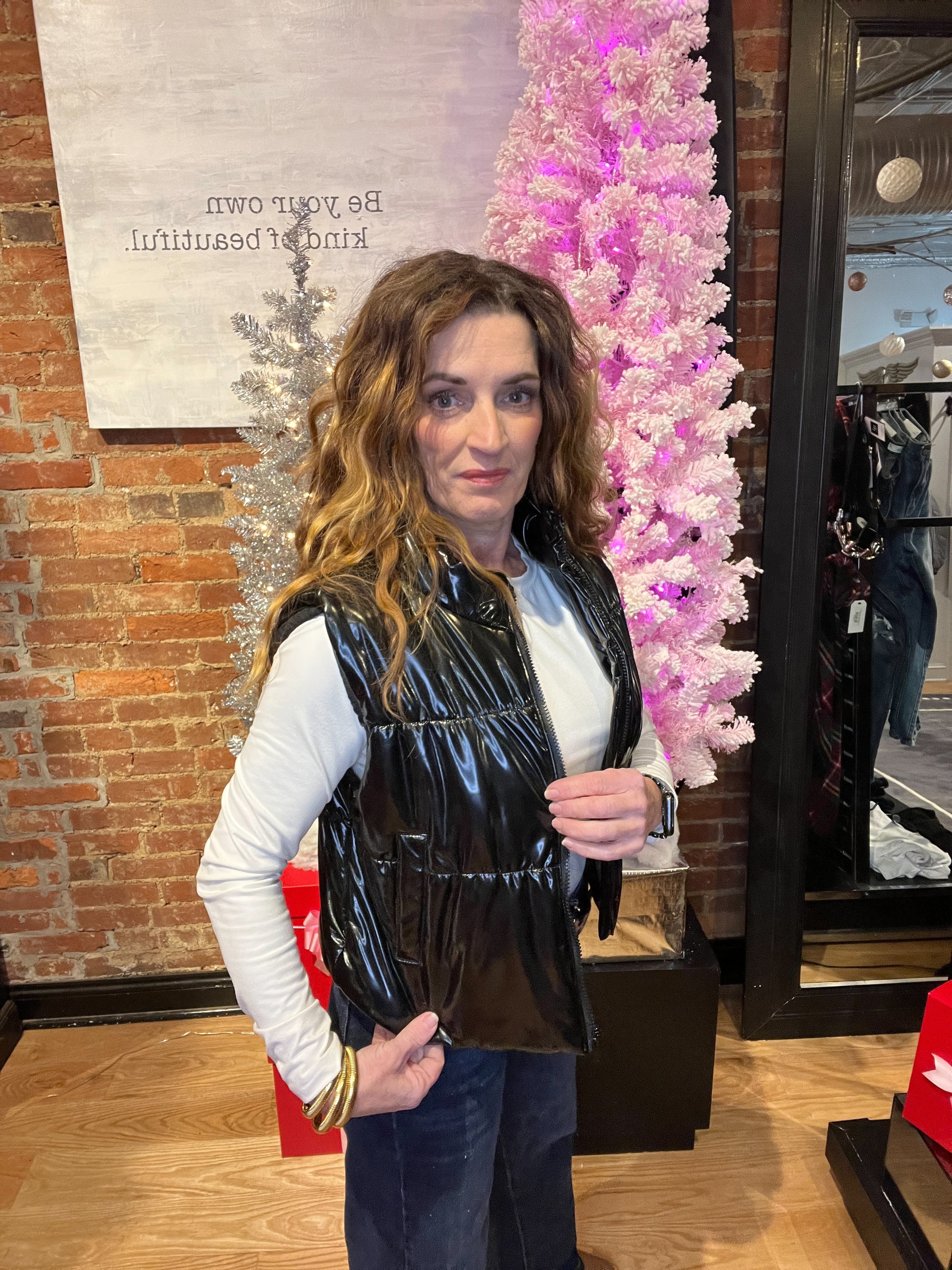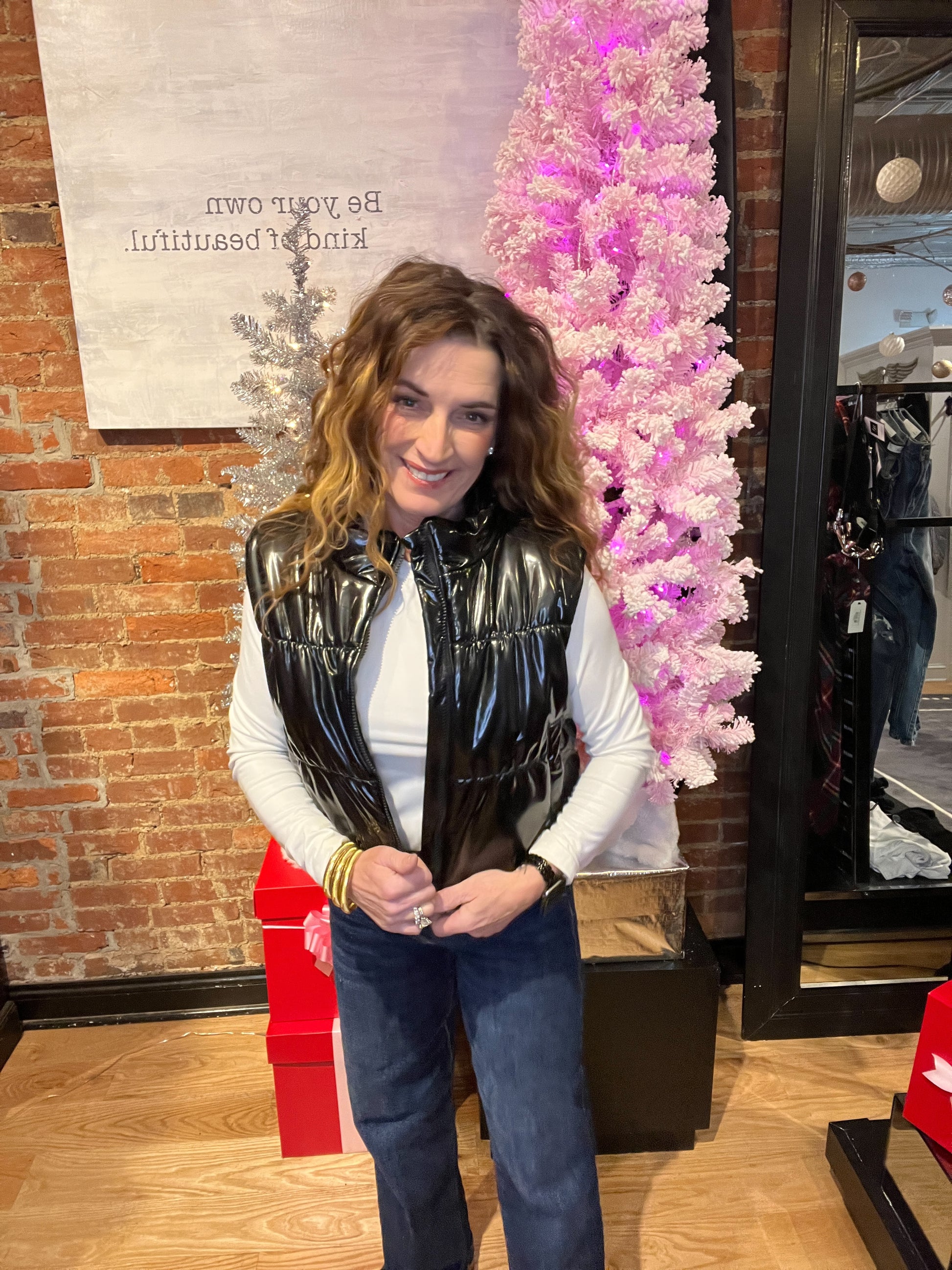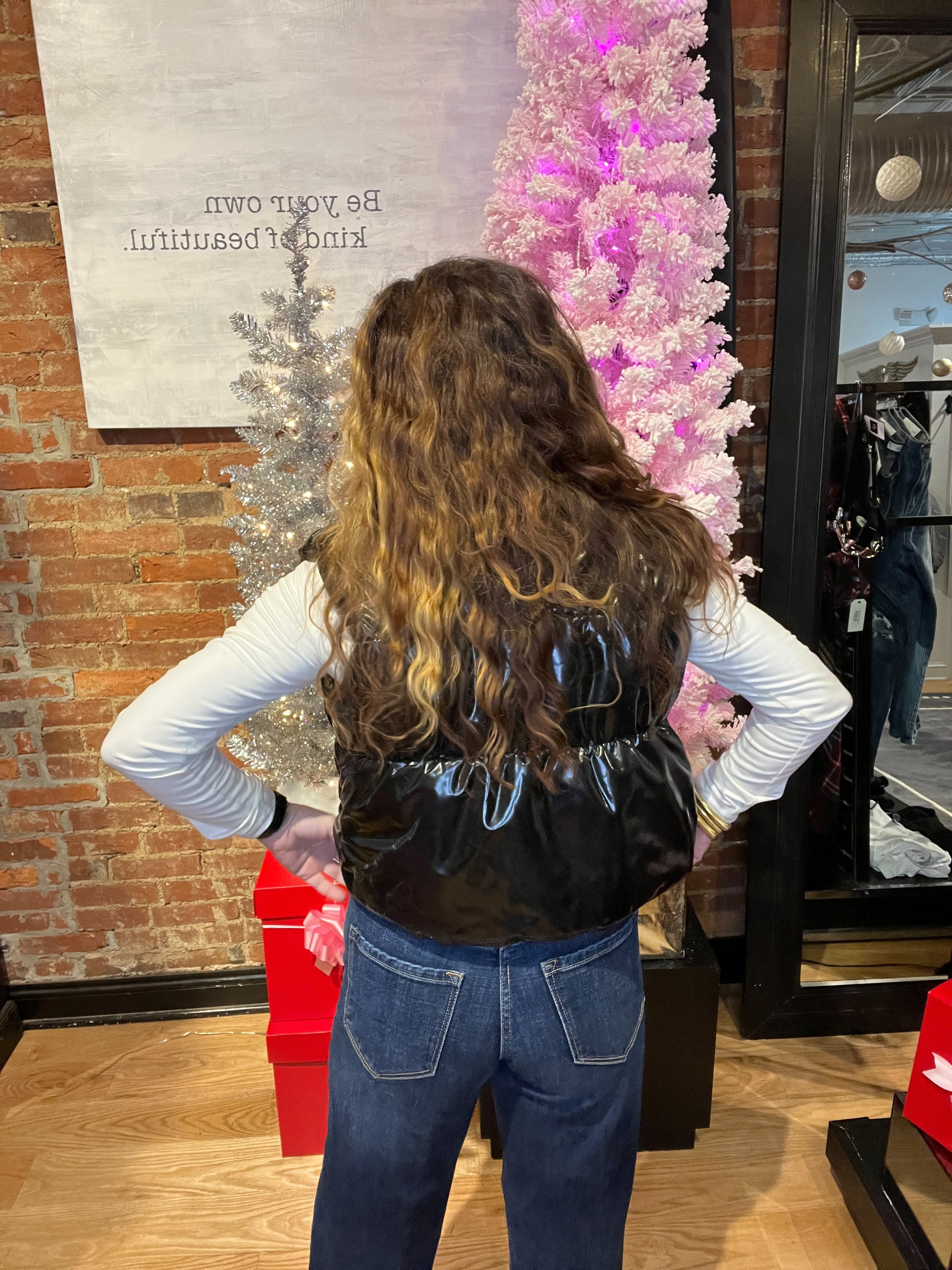 Rimani alla moda e alla moda con questo gilet imbottito corto in tonalità lucida!