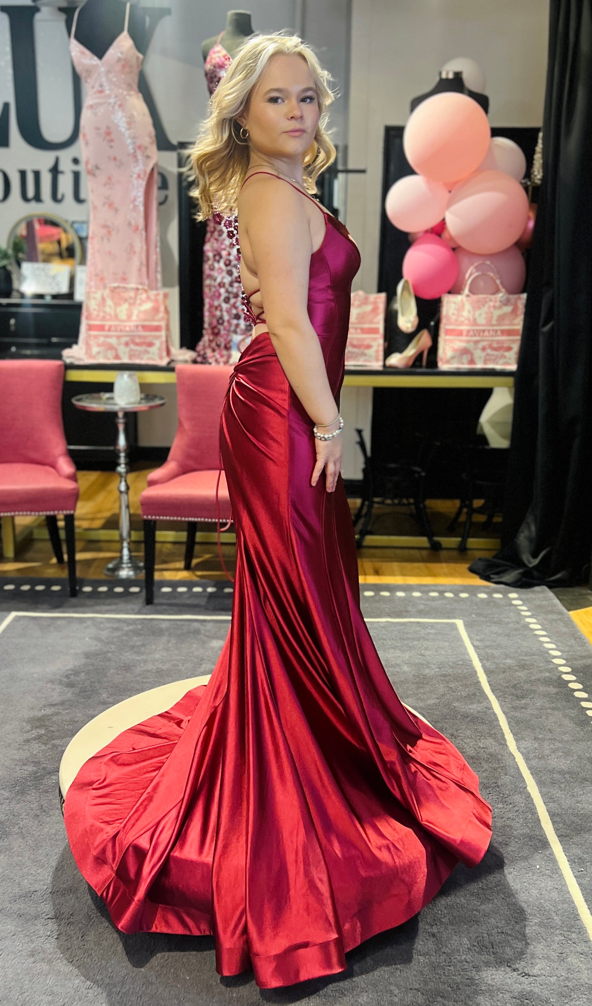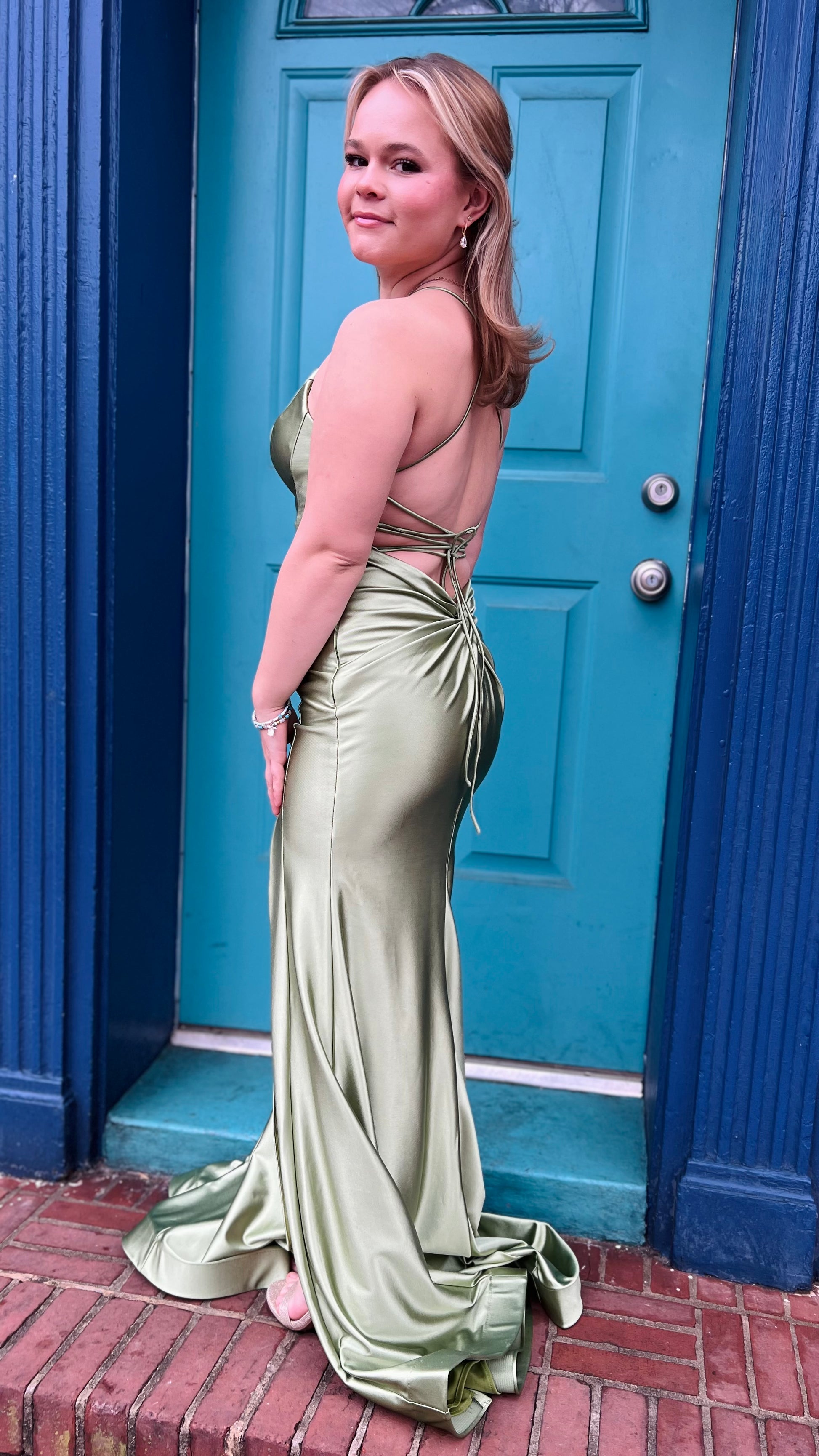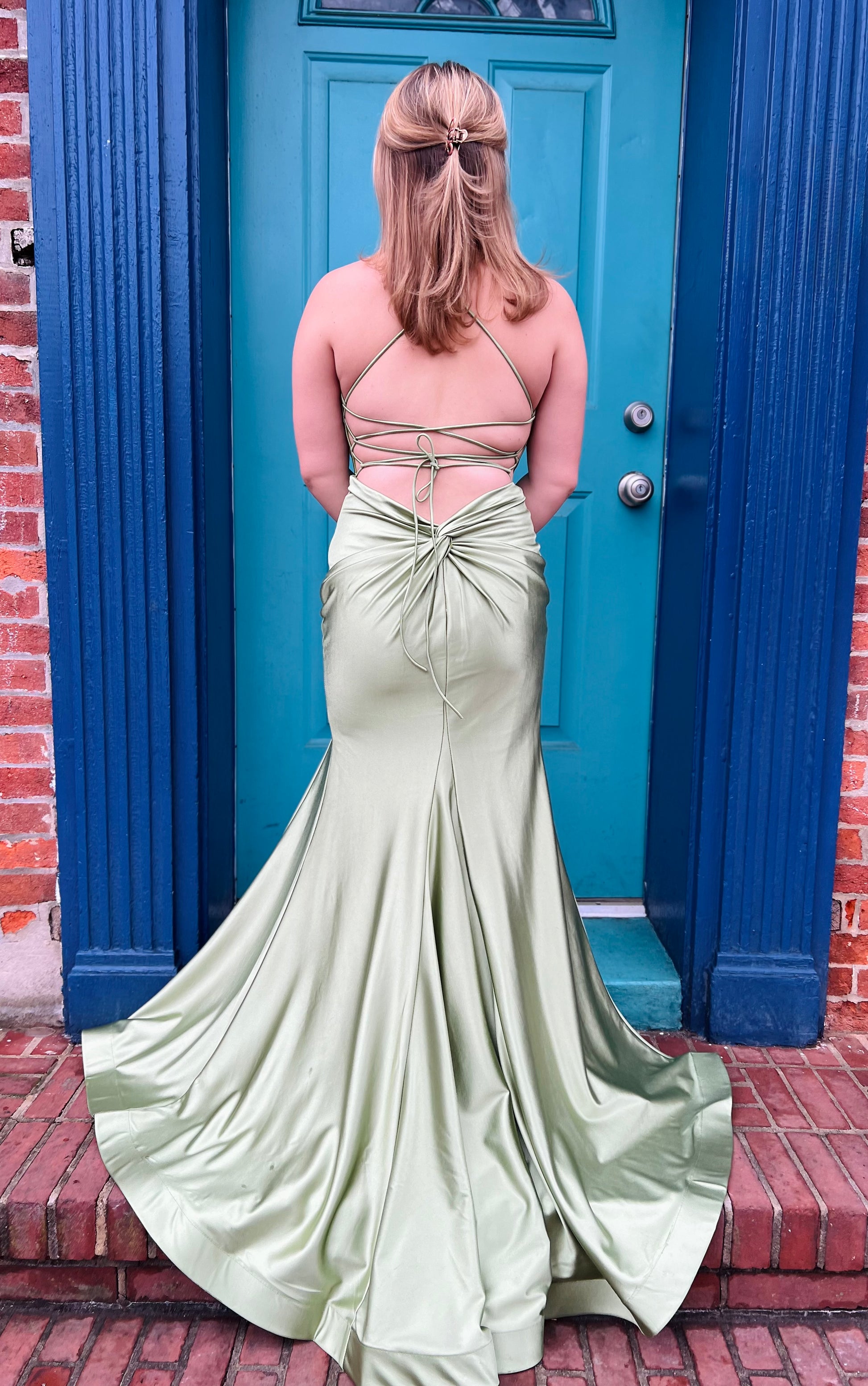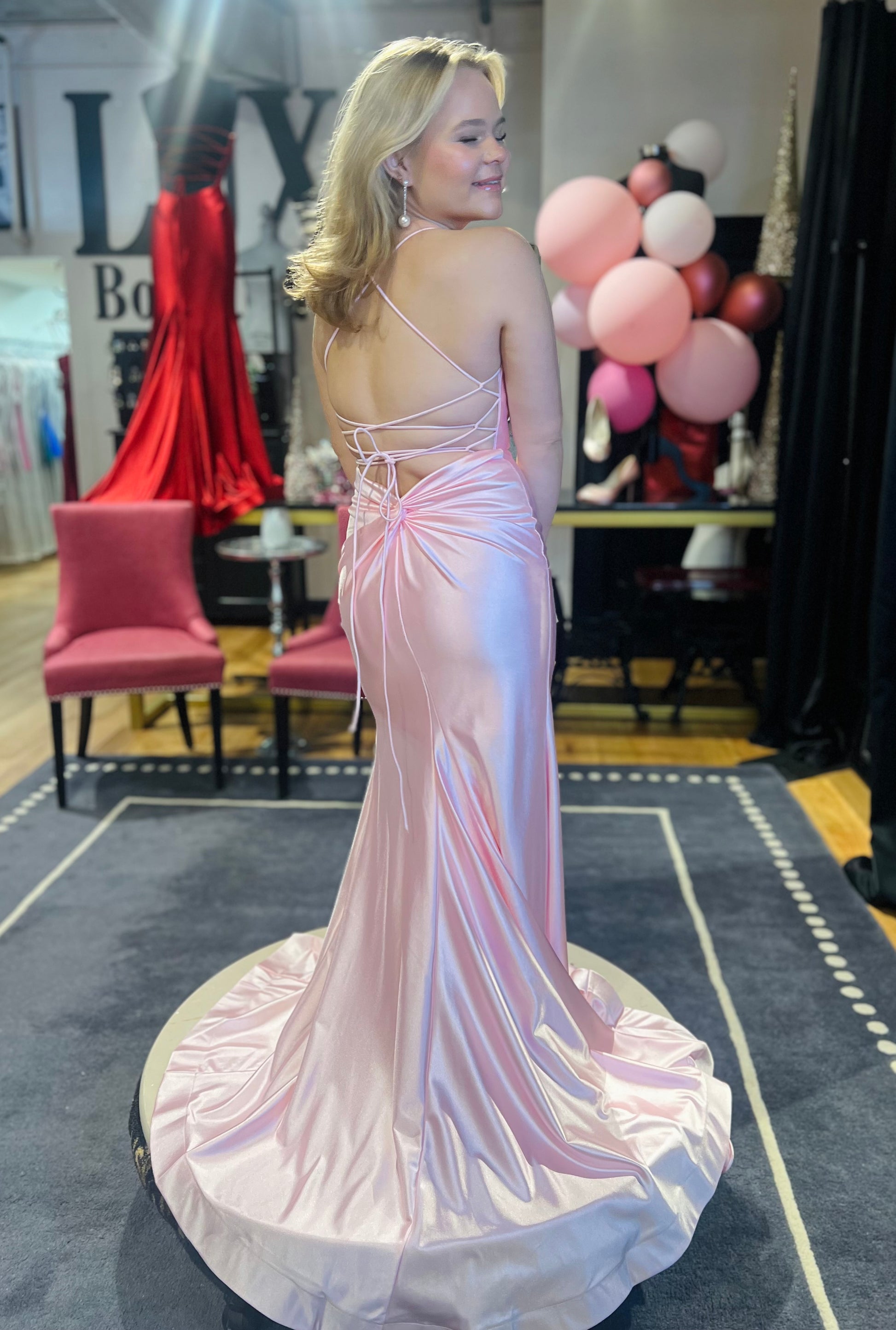 With a playful knotted back and flattering seamlines, this dress will make you feel confident and chic. The v-neck and stretch satin fabric add the perfect touch of elegance.